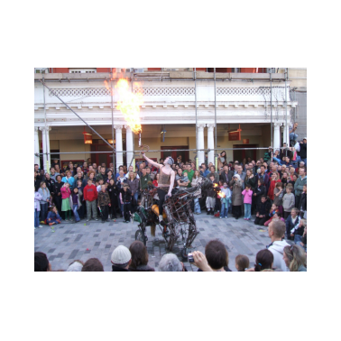 Paka is a unique interdisciplinary artist who creates spectacular and engrossing theatrical performance from a mix of mechanical sculpture, digital media, spectacular effects, bizarre characters, circus and puppetry. He, has worked extensively in the UK and internationally; both collaborating and producing his own solo work since 1985.