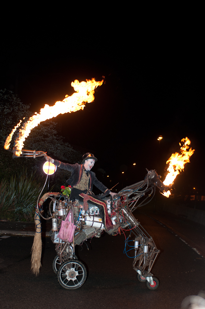 ‘But the most astonishing thing about the show has to be the Robotic Horse. A masterpiece of pneumatics and sculptural engineering, this remote-controlled creature all but steals the show. Never did the audience view it as anything but real as it cantered around the stage……and even breathed fire.