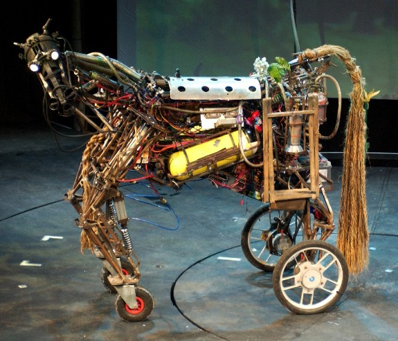 "The full-sized horse has to be seen to be believed: it is an extraordinary junk-metal creation with moving parts and it exudes the thrilling and terrifying power of real flesh and blood."