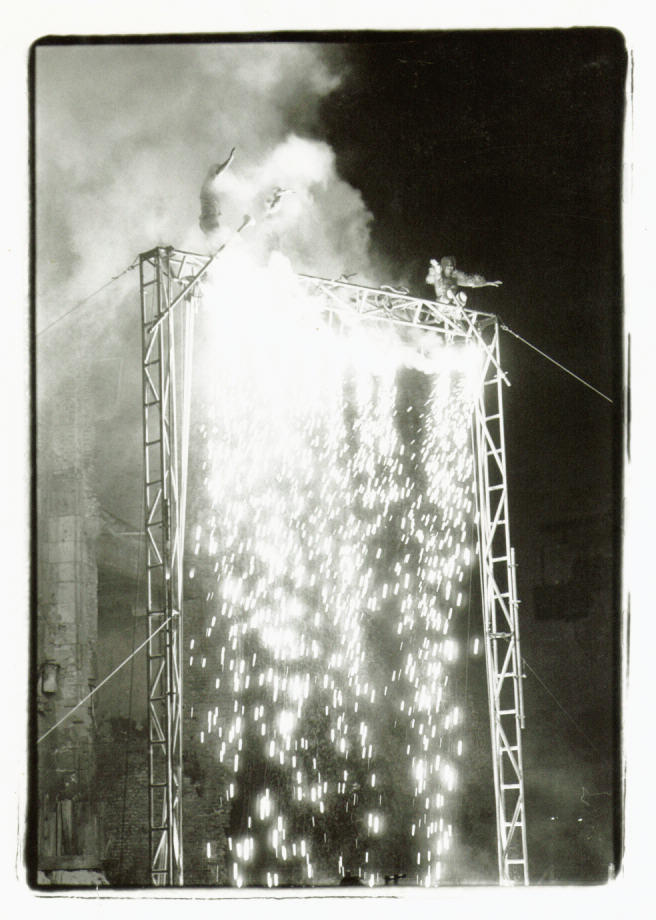 DNTT was a core of eighteen artists comprising seven different nationalities that created a ‘before its time’ fusion of circus, theatre, fire and machine mayhem.